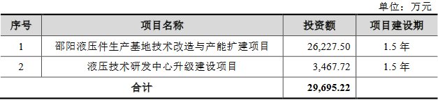 邵阳液压最终募集资金净额比原计划少8755.41万元。邵阳液压于10月13日披露的招股书显示,该公司拟募集资金2.97亿元,拟分别用于邵阳液压件生产基地技术改造与产能扩建项目、液压技术研发中心升级建设项目。?