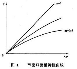 式(1-1)即为节流口的流量特性方程,相应的流量特性曲线如图1所示。