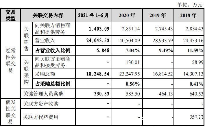 此外,报告期内公司与前五名客户供应商存在既有采购又有销售的情形,主要是零星和偶发的调货和购销交易。除前五大客户、供应商(雷珍辉控制的公司在2021年1-6月进入公司前五大供应商,为分析口径可比性,其销售和采购情况仍包含在下文的分析中)外,报告期内重叠客户供应商共有24家、30家、29家和16家,数量较多。