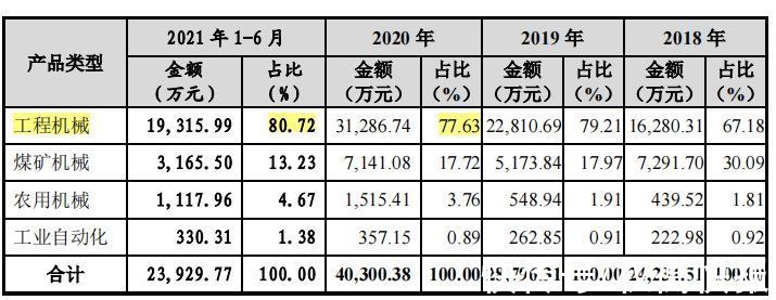 从产品应用行业来看,公司主营业务收入主要来源于工程机械行业和煤矿机械行业,液压密封件收入中,工程机械行业收入占比分别为79.82%、88.72%、84.56%和83.19%,煤机行业收入占比分别为16.66%、8.39%、9.10%和8.47%,工程机械行业和煤机行业收入合计占比超过90%;农用机械、工业自动化行业收入占比很小。煤机行业收入自制件和国产件占比较高,国产化率已经处于较高水平;工程机械行业密封件国产化率相对较低,客户对主密封件和导向环等重要辅助密封有使用进口件的需求,导致工程机械行业外购进口件收入占比较高。