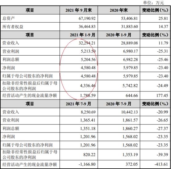2021年1-9月,唯万密封实现营业收入3.23亿元,同比增长11.79%;实现归属于母公司股东的净利润4580.48万元,同比下降23.40%;实现扣除非经常性损益后归属于母公司股东的净利润4336.46万元,同比下降24.49%;经营活动产生的现金流量净额为1788.59万元,同比增加177.45%。?