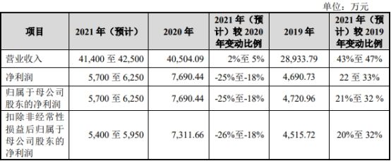 唯万密封预计2021年实现营业收入4.14亿元至4.25亿元,同比增长2%至5%;归属于母公司所有者的净利润为5700万元至6250万元,同比下降25%至18%;扣除非经常性损益后归属于母公司所有者的净利润为5400万元至5950万元,同比下降26%至18%。?
