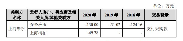 招股书介绍,上海斯孚系贸易商,报告期内从事密封件的购销,其主要业务是在客户有紧急采购需求而备货不足时有紧急调货需求,部分密封件由上海斯孚采购并向公司销售。报告期内上海斯孚主要通过乔圣液压采购调货。